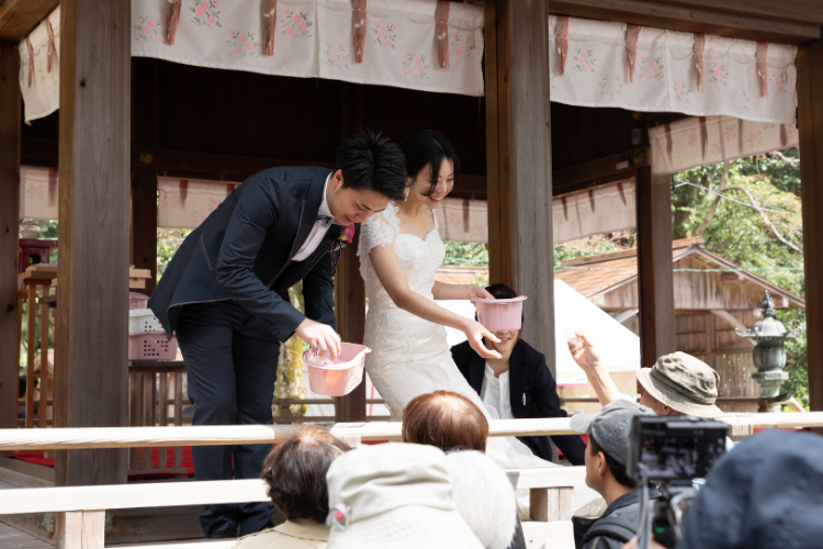 地域の皆さまに愛され続けてきた花換まつりは、伝統的な神事をはじめ、模擬結婚式、婚活イベント、猿回しなど、多彩な催しで賑わいます。世代を超えて楽しめる、敦賀を代表する春の祭りです。